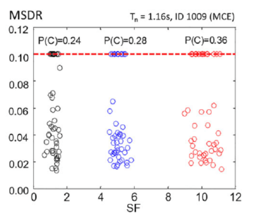 A look at the article: Dávalos, H., & Miranda, E. (2019). Evaluation of bias on the probability of collapse from amplitude scaling using spectral‐shape‐matched records. Earthquake Engineering & Structural Dynamics48(8), 970-986.