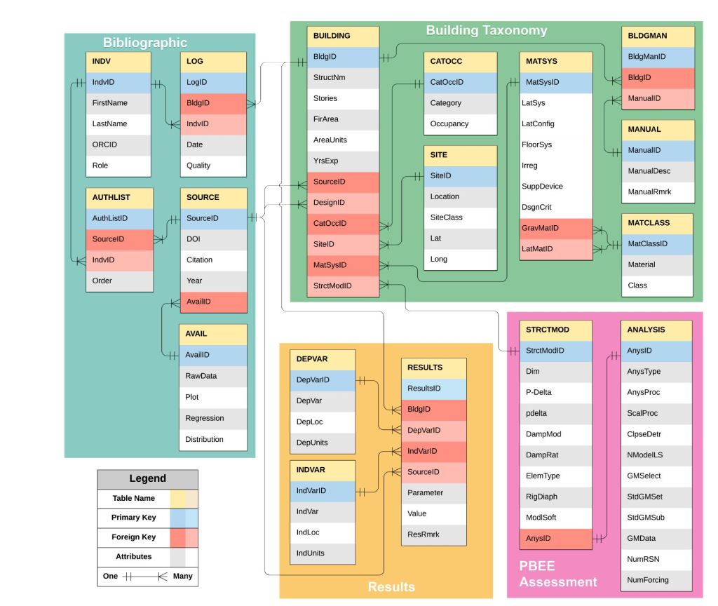 Relational databases can serve as a flexible and powerful tool to develop next-generation of performance inventories. This study presents the metadata of a database structured around published results of 222 PBEE assessments of mid-rise buildings, as a curated resource for future machine learning applications, early design, and seismic regional assessments.