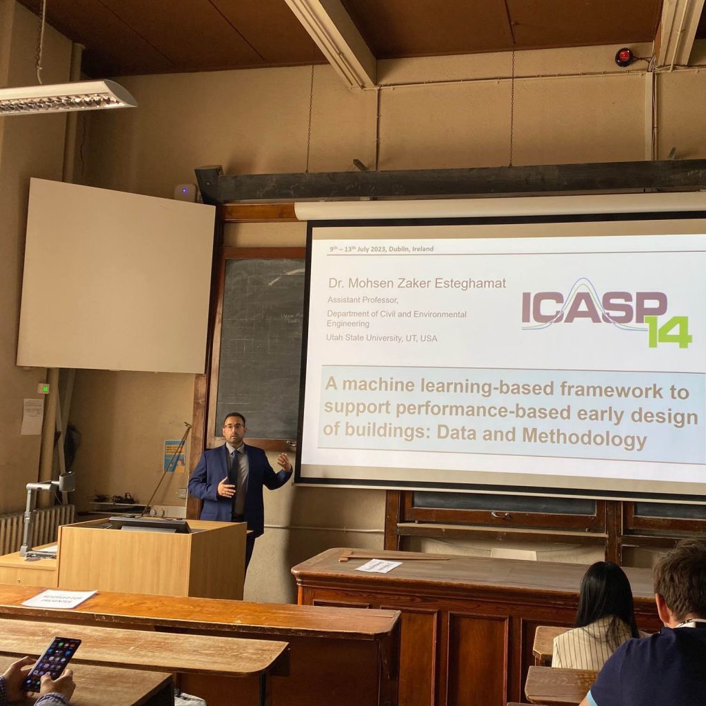 7/13-7/9: Dr. Esteghamati attended the 14th International Conference on Application of Statistics and Probability in Civil Engineering (ICASP14), where he gave two presentations on (1) predicting fire resistance of timber columns using ML, and (2) ML-assisted performance-based early design.
