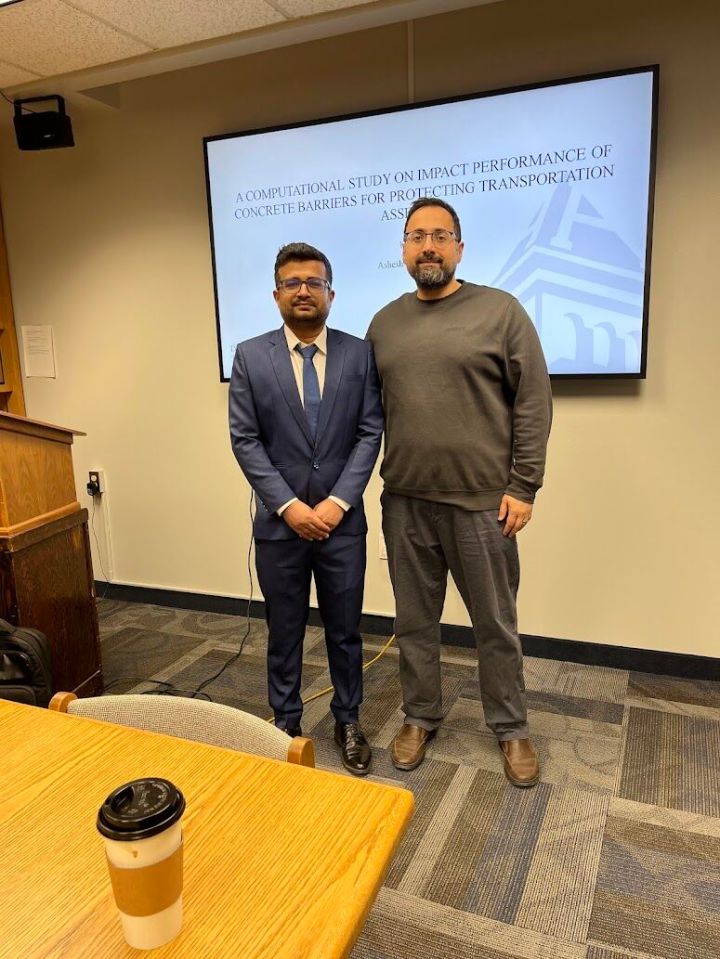 5/2: Congratulations to Ashesh (Ph.D.) and Logan (MS) on their graduation! We wish them the best of luck in their future endeavors. Logan will work as a Structural Engineer in ARW Engineers (Utah), whereas Ashesh’s role will be as a Bridge Structural Engineer in Gannett Fleming TranSystems (Florida).